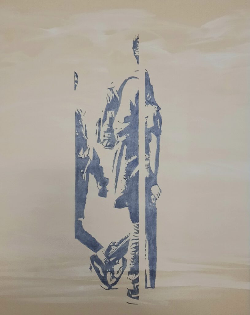“Between People” gaat over hoe we tot elkaar verhouden in de publieke ruimte en de dagelijkse omgang tussen mensen. Het grootste gedeelte van onze tijd bevinden we ons tussen de mensen. We zijn continue bezig deze interacties, onze communicatie en verwachtingen te begrijpen en een plek te geven. “Between People” laat mijn fascinatie zien voor de onderlinge verhoudingen, lichaamstaal en dynamiek tussen mensen. In mijn schilderijen neem ik de tijd menselijke interacties te observeren en bewust te worden van de dynamiek van het leven.